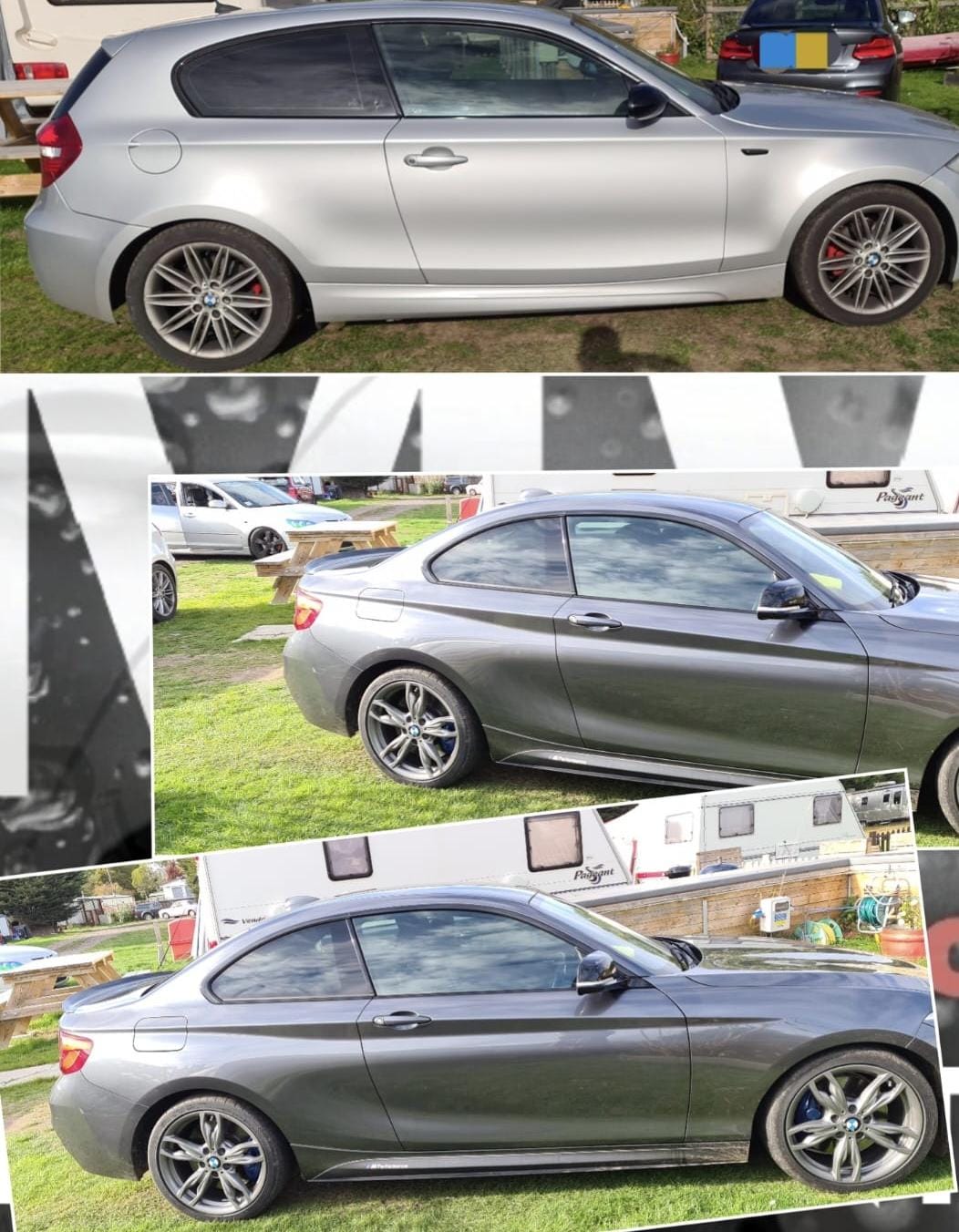 Film can be removed from your car without causing any damage, we would however recommend that you have this done professionally to avoid any associated costly damage. Any professional tint shop would have the correct tools and chemicals to remove such stubborn adhesives. Retinting your car is then obviously the same as starting afresh, the only thing to bear in mind is that quality film will not fade and discolour in time like dyed film, so you will get a better match on smashed and retinted windows
